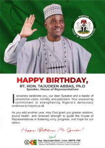 I sincerely celebrate you, our dear Speaker and a leader of uncommon vision, humility, and patriotism. Your unwavering commitment to strengthening Nigeria’s democracy continues to inspire us all.